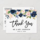 Cartão Postal Pincel Script Rosa Azul Floral Casamento Agradecim