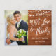 Moderno Script Pincel, Madeira Rústica e Luzes de Corda, Com Amor e Agradecimento Cartão de Agradecimento de Foto de Casamento