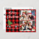 Manuscrito em Pincel Moderno - Cartão-postal de Xadrez Vermelha Vintage com Vintage com árvore de Natal - Feliz Natal Família 2 Foto Vermelha