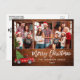 Cartão-postal de Natal Feliz para a Família Foto Rustic Wood 3 Foto do Script de Pincel Moderno Watercolor Vintage Red Truck com Árvore de Natal.