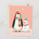 Cartão Postal Pinguim bonitinho com o Natal Rosa do Pastel Snowm