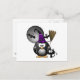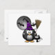 Cartão Postal Pinguim Bruxo Bonito com Cena de Halloween