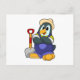 Cartão Postal Pinguim como Fazendeiro com Pá