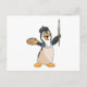 Cartão Postal Pinguim como Pintor com Pincel de Tinta & Cor