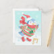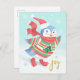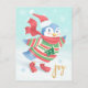 Um Pinguim festivo de inverno desliza alegremente através do gelo enquanto flocos de neve delicados caem contra um céu azul minúsculo! Ilustração original de Noël Snow.