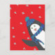 Cartão Postal Pinguim de Natal bonito em vermelho