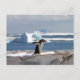 Um pinguim Gentoo caminhando em frente a um arco fora do gelo. A imagem foi tirada na Antártica.