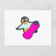 Cartão Postal Pinguim em Óculos de Esqui e Esportes de Snowboard