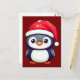Cartão Postal Pinguim Kawaii Vestindo um Chapéu Noel Cozy neste