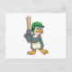 Cartão Postal Pinguim no beisebol com taco de beisebol e capacet