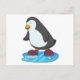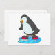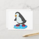 Cartão Postal Pinguim no patins no gelo com patins de gelo