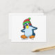 Cartão Postal Pinguim patinando no gelo com patins de gelo