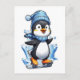 Legal Pinguim de inverno vestindo um aquecedor de cabeça e patinando com cachecol sobre fundo transparente de gelo Arte gráfica
