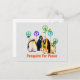 Pinguins bonitos de todas as formas e tamanhos guardam sinais de paz decorados com flores enquanto marcham em protesto pela Paz. O texto diz "Pinguins Pela Paz."