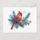 Cartão Postal Pinheiro Winter Cardinal e Flocos de Neve