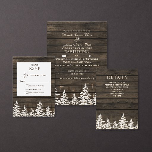 Barnwood Rustic Pine Trees Winter Wedding Criado por Maria G