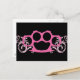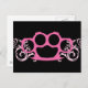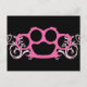 These t-shirts and other items are printed with a retro image of an outline of brass knuckles and decorative swirls in pink.