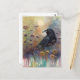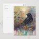 Cartão Postal Pintado à Mão Raven com Flores Selvagens