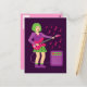 Esta ilustração fofa e divertida do pintinho rochoso apresenta um roqueiro brilhante e colorido fêmea com cabelo verde, uma guitarra rosa quente, uma lâmpada roxa e uma saia verde de impressão leopardo! Esta adorável anos 80 de vintage inspirou arte musical é o presente perfeito para comprar para qualquer um que ama arte vetorial original com um tema musical!