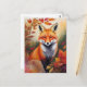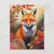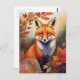 Esta trabalho de arte de pintura acrílica apresenta uma raposa em uma floresta no outono, com folhas de outono ao seu redor. Um retrato de cor quente com laranjas, vermelhos, amarelos e castanhos, perfeito para a temporada de outono!