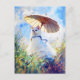 Cartão Postal Pintura de Gato Branco com Parasol em Campo de Pip
