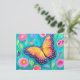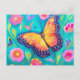 Cartão Postal Pintura de uma borboleta num campo de flores