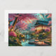 Cartão Postal Pintura do Jardim Japonês Tranquilo na Primavera