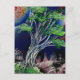 Cartão Postal Pintura em árvore com cidade azul e sol laranja