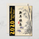 Pintura original com dois ratos e bambu em papel de vintage (imagem) fundo + ideograma vermelho de Rat + desejos de "Feliz ano novo" em chinês. Design no cartão postal vertical com fundo preto para textos personalizados: grande amarelo 2020 e Feliz ano novo em inglês. Cartão de Saudação Correspondente, convite, produtos de artesanato e muito mais... Perfeito para um Ano Novo Chinês moderno e eterno do Rato 2020.