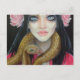 Cartão Postal Pintura original de uma garota e sua cobra