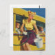 Cartão Postal Pinup Retro Mulher Lavando ônibus escolares