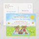 Cartão Postal Piquenique do Ursinho de Pelúcia em Azul Xadrez de