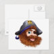 Ilustração de um rosto pirata feliz sorridente com uma mancha de olho e crânio e ossos cruzados em seu chapéu pirata