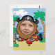 Um pirata engraçado de desenho animado parado numa praia com o rosto cortado para que você possa adicionar sua própria foto. Faz um presente excelente!