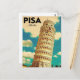 A fantastic vintage-style travel poster featuring a dramatic, close-up view of the world-famous Leaning Tower of Pisa, Italia. The distressed texture and classic typography give this design a truly retro feel, capturing the spirit of mid-century Italian tourism. It's the perfect postcard for travel enthusiasts, fans of Italian history and architecture, or anyone collecting classic monument artwork.