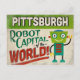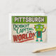 Um cartão postal engraçado da viagens vintage de Pittsburgh Pensilvânia que apresenta um robô amigável com um texto retrô divertido que diz, "Pittsburgh, Robot Capital do Mundo!"