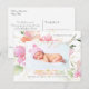 Anúncio de nascimento "Baby Girl" da PixDezines, com floral em aquarela de ervilhas-de-cheiro em tons rosa pêssego e creme (veja os filtros para tonalizar), uma escrita à mão com caligrafia moderna, com um coração em dourado falso para cartões-postais de anúncio de nascimento com fotos, com cor de fundo e fontes personalizáveis.