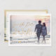 Os PixDezines salvam a data com fontes modernas e divertidas de script manuscrito em ouro falso e suas fotos de noivado em frente e atrás de cartões postais. Copyright © 2008-2017. PixDezines.com™ e PixDezines™ em zazzle.com. Todos os direitos reservados.