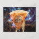 Cartão Postal Pizza Cat no Espaço Vestindo Pizza Slice