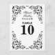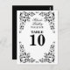 © 2011 Designs socialitas. Uma elegante placa de números de mesas preto e branco com lindas espirais decorativas de canto prontas para serem personalizadas para o seu evento. O estilo de fonte pode ser alterado. Precisa de ajuda com personalização? Por favor, não hesite em contactar-me com os seus requisitos e uma ligação a este design.