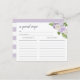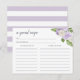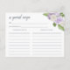 Cartão de receita floral de cor d'água lavanda que corresponde aos nossos convites de chá Jardim Rosa em Lilac.