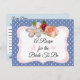 Corel, Rosa e Burgundy Rose Bouquet em um cartão de receita de casamento pontilhado Blu e polka branca para a noiva. Coloque esses cartões de receita fofos no convite para o casamento ou Salve as Datas para que seus amigos e familiares se encham e retornem com o RSVP ou no casamento.