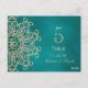 CARTÃO POSTAL PLACA NÚMERO DA MESA DE CASAMENTO ÍNDICA TEAL E DO