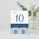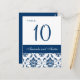 Cartões de Número de Tabela de Casamento tema damasco Azul e Branco bonitos e Marinho. Encomenda um por número de tabela. Edite usando a opção "personalizar" para alterar o número e depois adicionar ao carrinho. Selecione para arquivar e personalizar novamente com o próximo número da tabela, etc. Continue para que o número de cartões postais de solteiro com cada número diferente no carrinho seja igual aos números de tabela.