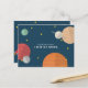 Cartão Postal Divertido com Planetas Ilustrados Cartoonizados Azuis