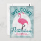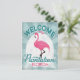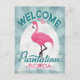 Plantação Flórida rosa flamingo. No estilo de posters viagens vintage, diz "Bem-vindo ao Plantação, Flórida" em turquesa verde rosa, branca e horta.
