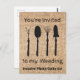 Você é convidado para o meu casamento. Plantas invasoras têm que ir. Apoie plantas nativas removendo invasores de terras alienígenas com esta carta mostrando ferramentas de jardim em burlap para uma fazenda casual ou um olhar de jardim. Altere o cartão postal conforme desejado. Texto totalmente personalizável.