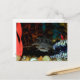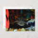 Este cartão-postal apresenta a vista frontal de um Pleco. A área ao redor deste Pleco é a cascalho e plantas do aquário.