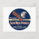 Anúncio vintage para pó de leite desnatado de processo de rolo de grau extra da Rádio. Imagem de um rótulo de produto de pó de leite representando a cabeça de uma vaca usando um arnês em uma moldura circular. Raios de eletricidade são mostrados ao redor da palavra rádio no texto.