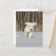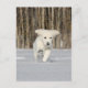 Cãozinho ou ursinho polar? Uma vovó de recuperação de ouro adorável tocando na neve com seu casaco de cor clara parecendo quase branco.